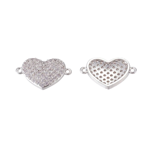 Ühendaja “Kristallidega Süda” 12x19x3mm (BMPCZ; Platinum)