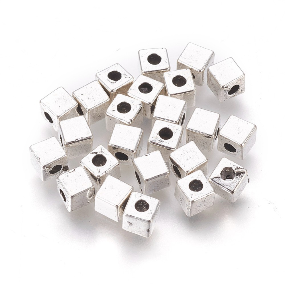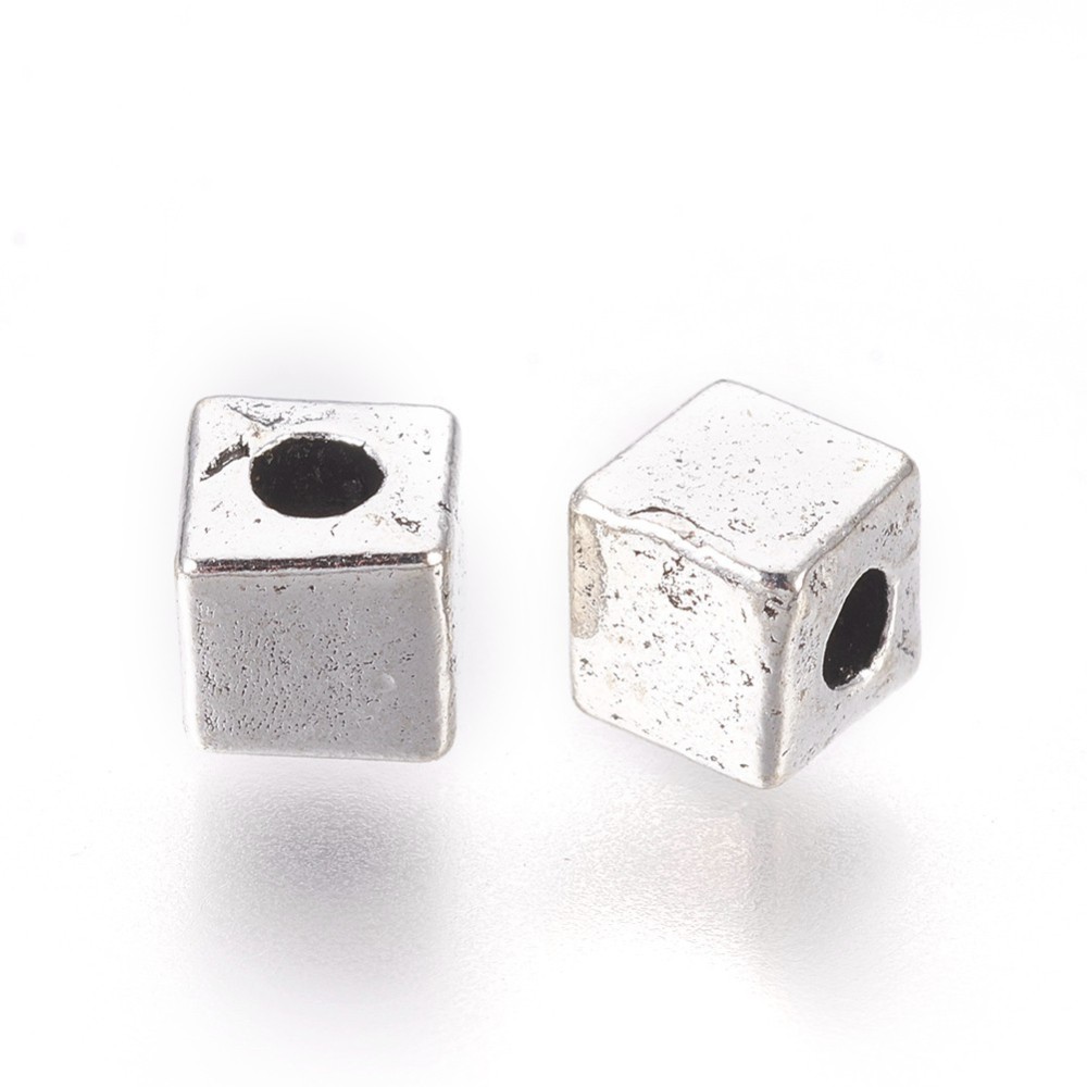 Metallhelmes Stainless Steel “Kuubik” 4x4x4mm (Antique Silver)